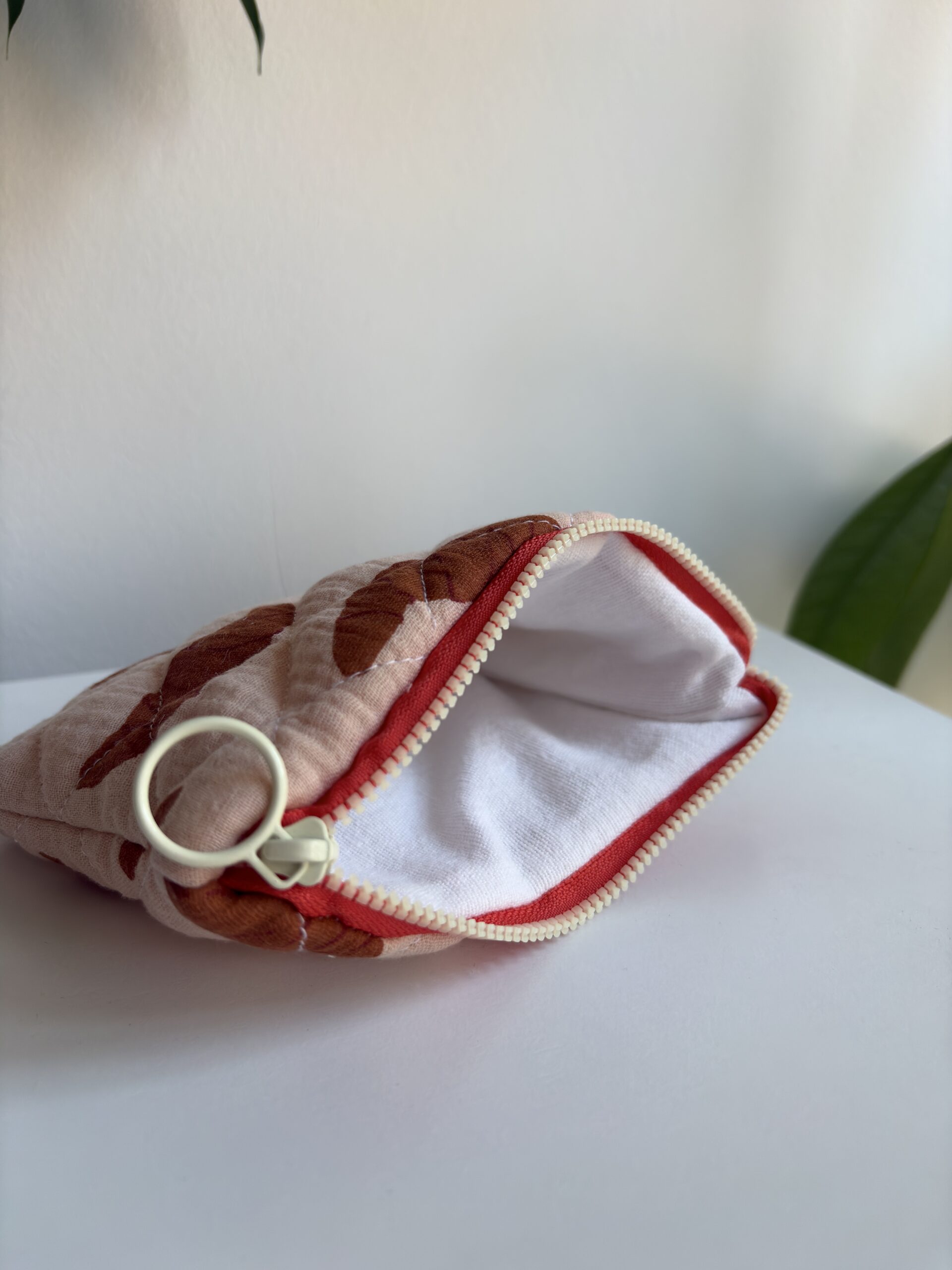 Portfelik w kolorze brzoskwiniowym / lekko beżowym kolorze w uroczy rogalowy print.