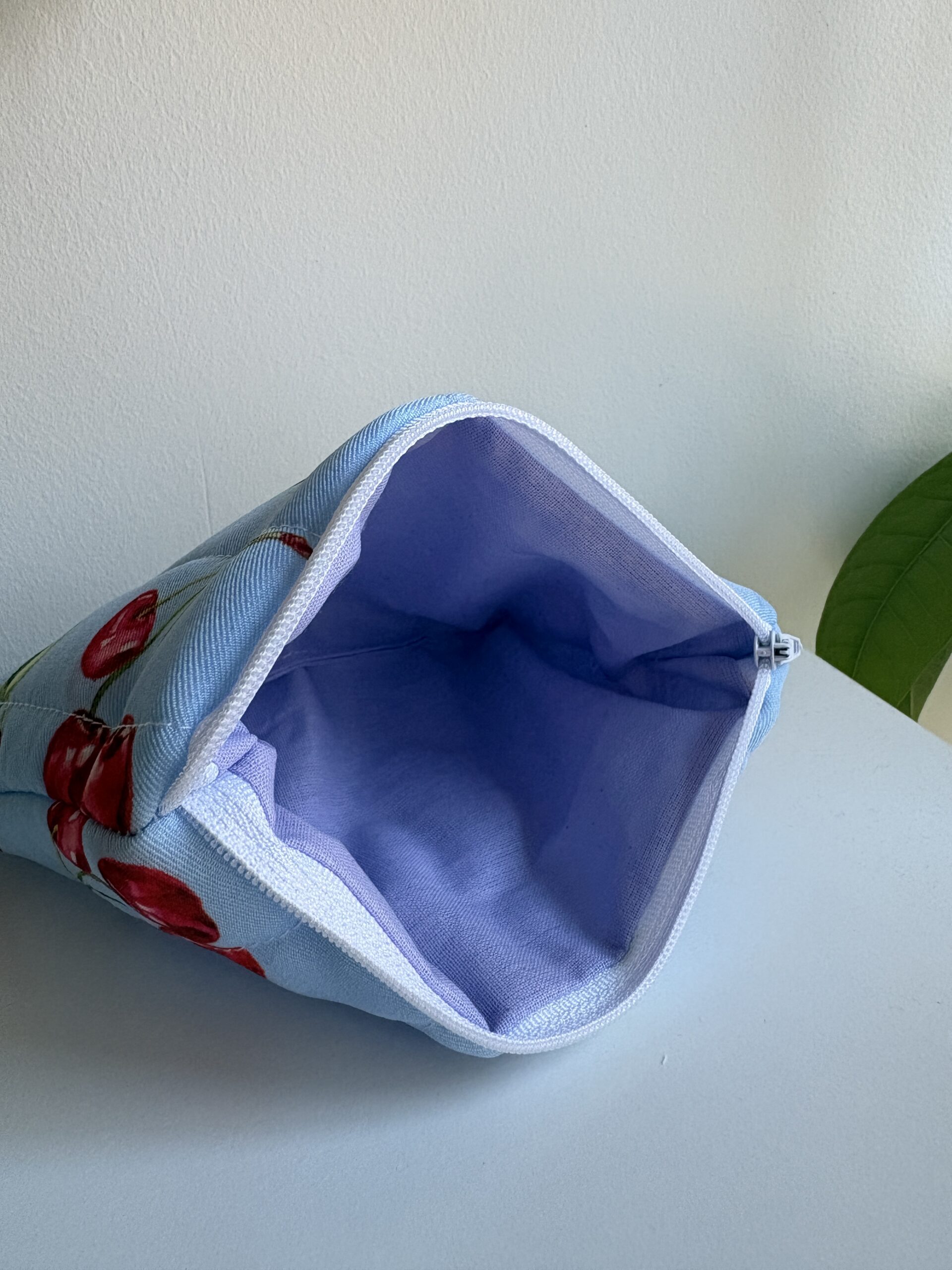 Niebieski portfelik w wiśnie